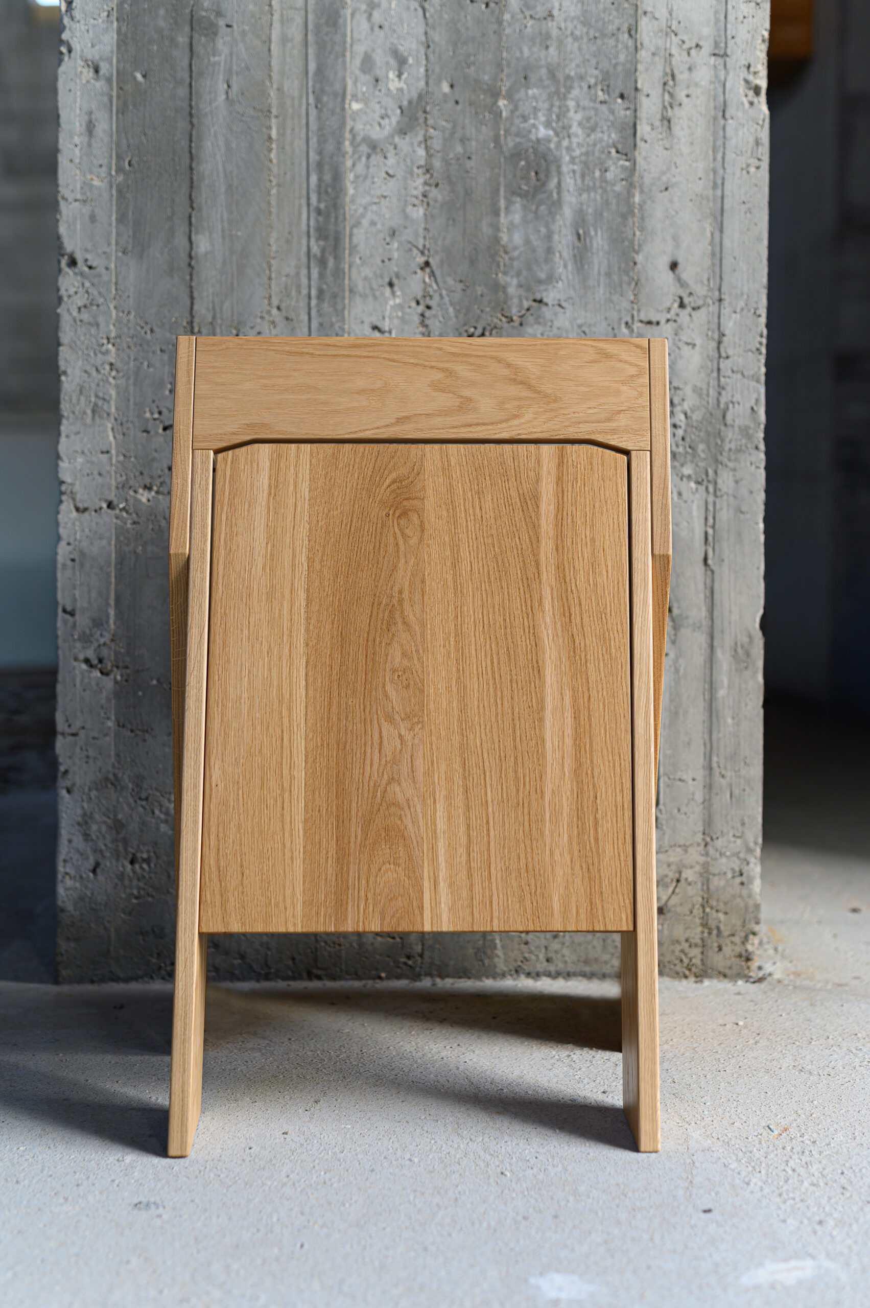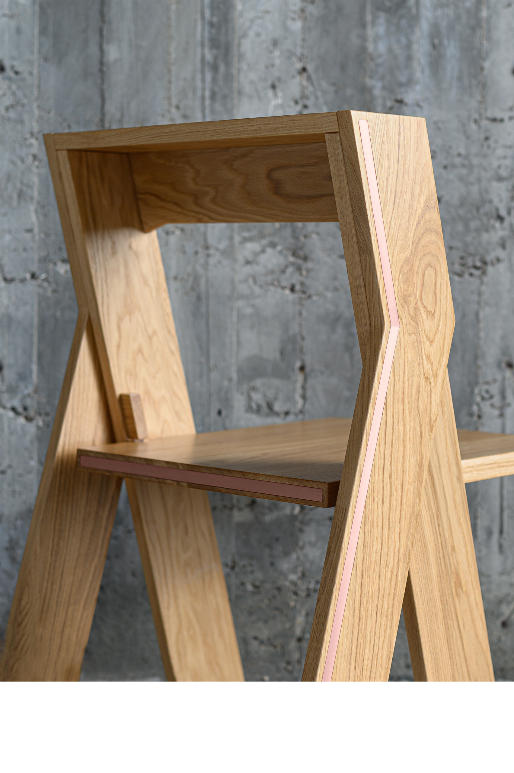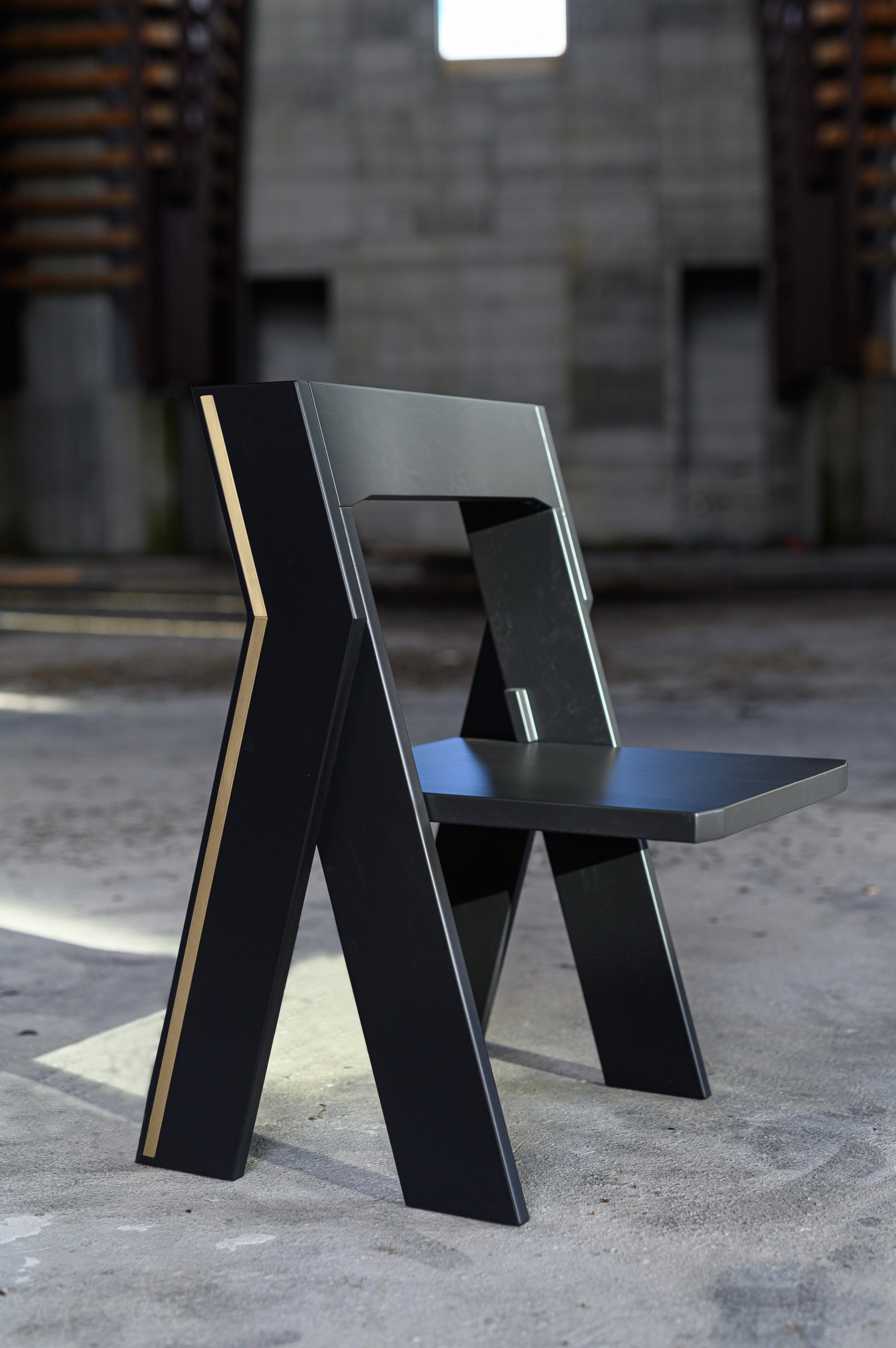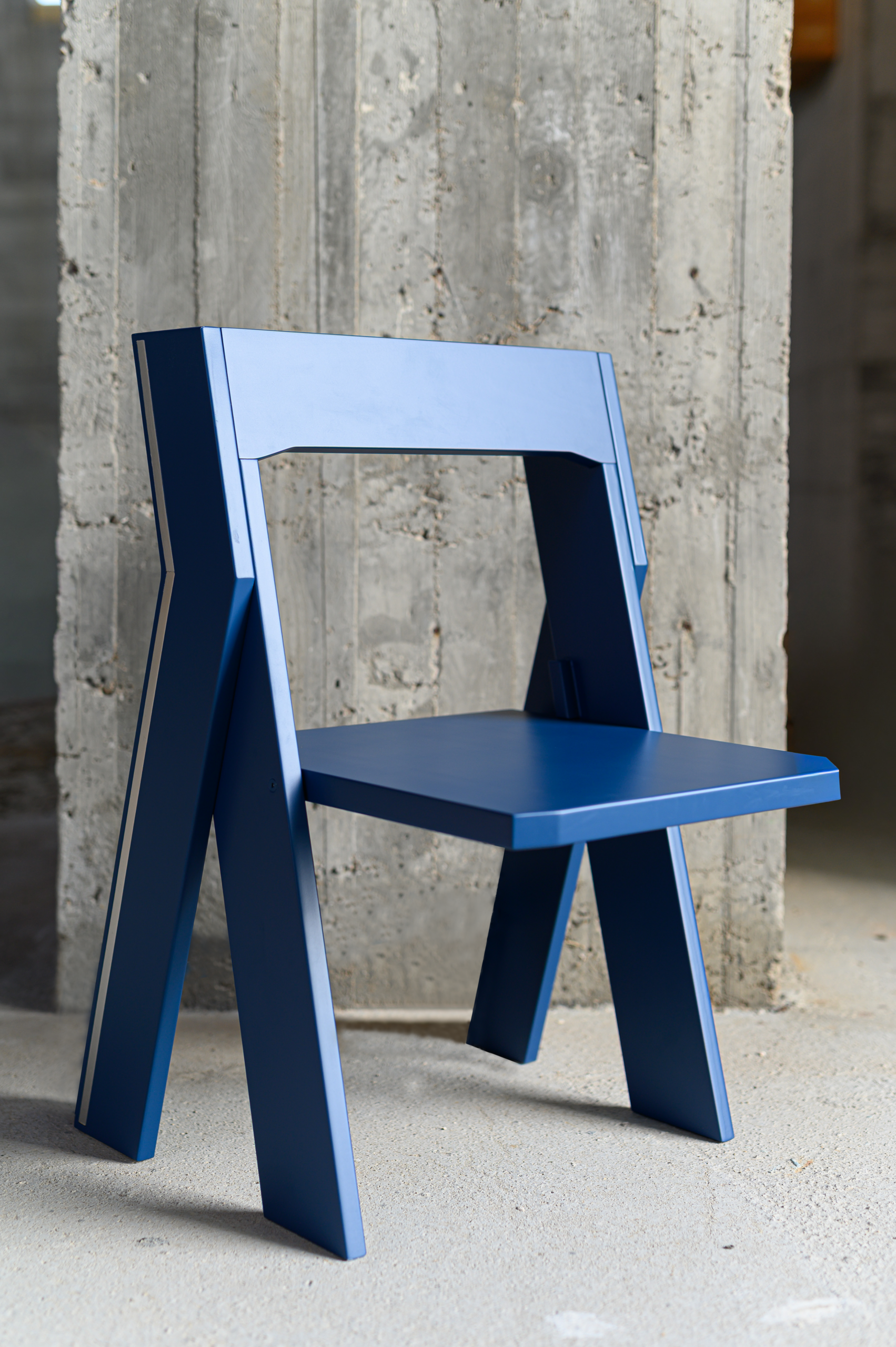 Structural Stability: The sharp, open angle formed by the two legs of the chair creates a solid support base—an inverted V—an archetype of strength. Just like the Greek lowercase letter, the visually dynamic intersection of the profile of the two sides (legs/backrest) mirrors a clean, angled, and minimal silhouette; all executed with geometric purity.