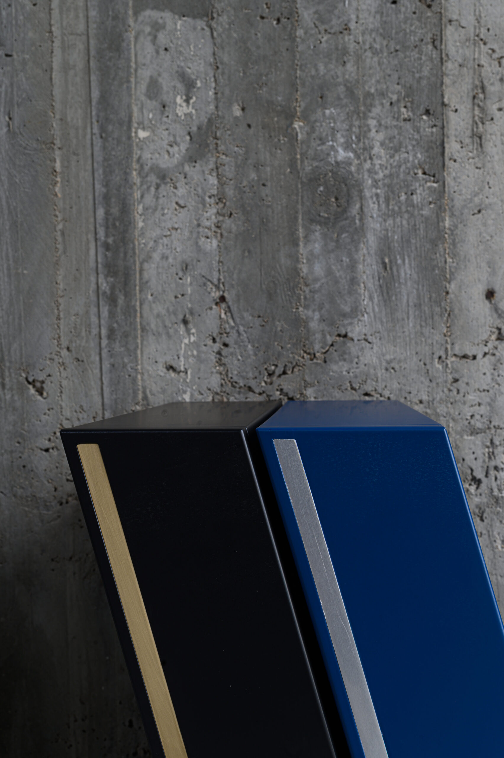 The Spirituality of Matte Lacquered Blue expands through the Brushed Steel, optimally fostering man’s listening and dialogue.
